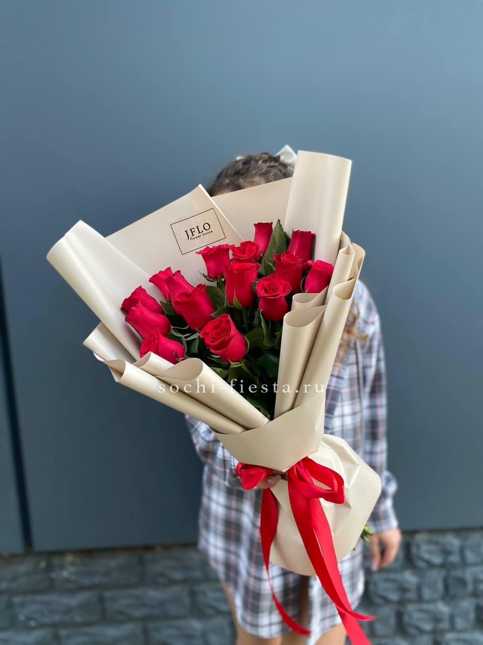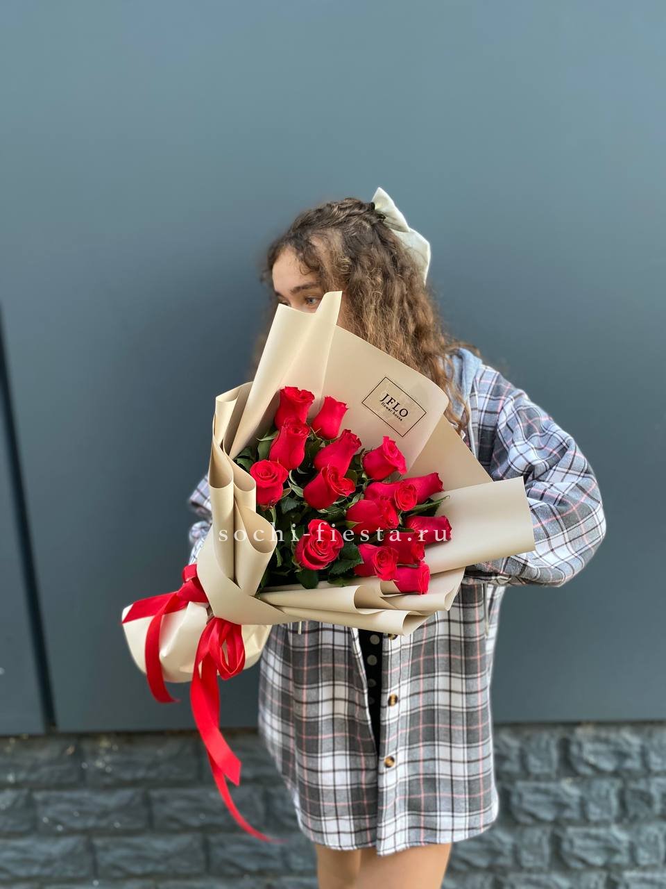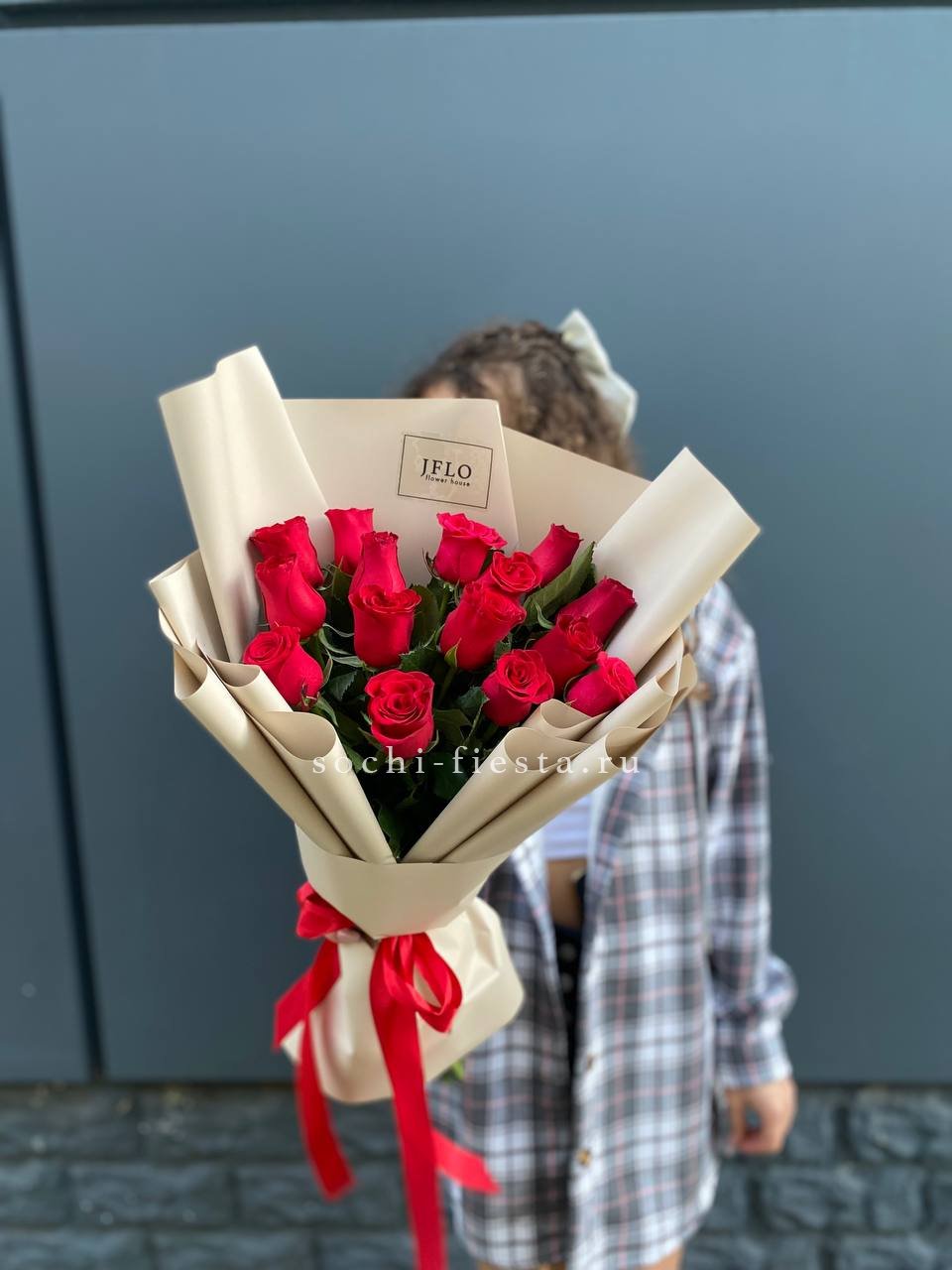 Классическая красная роза в лаконичной латте пленке — для тех, кто ценит чистоту формы. Пятнадцать стеблей держат ровный ритм и не перегружают образ. Простота, которая всегда работает.