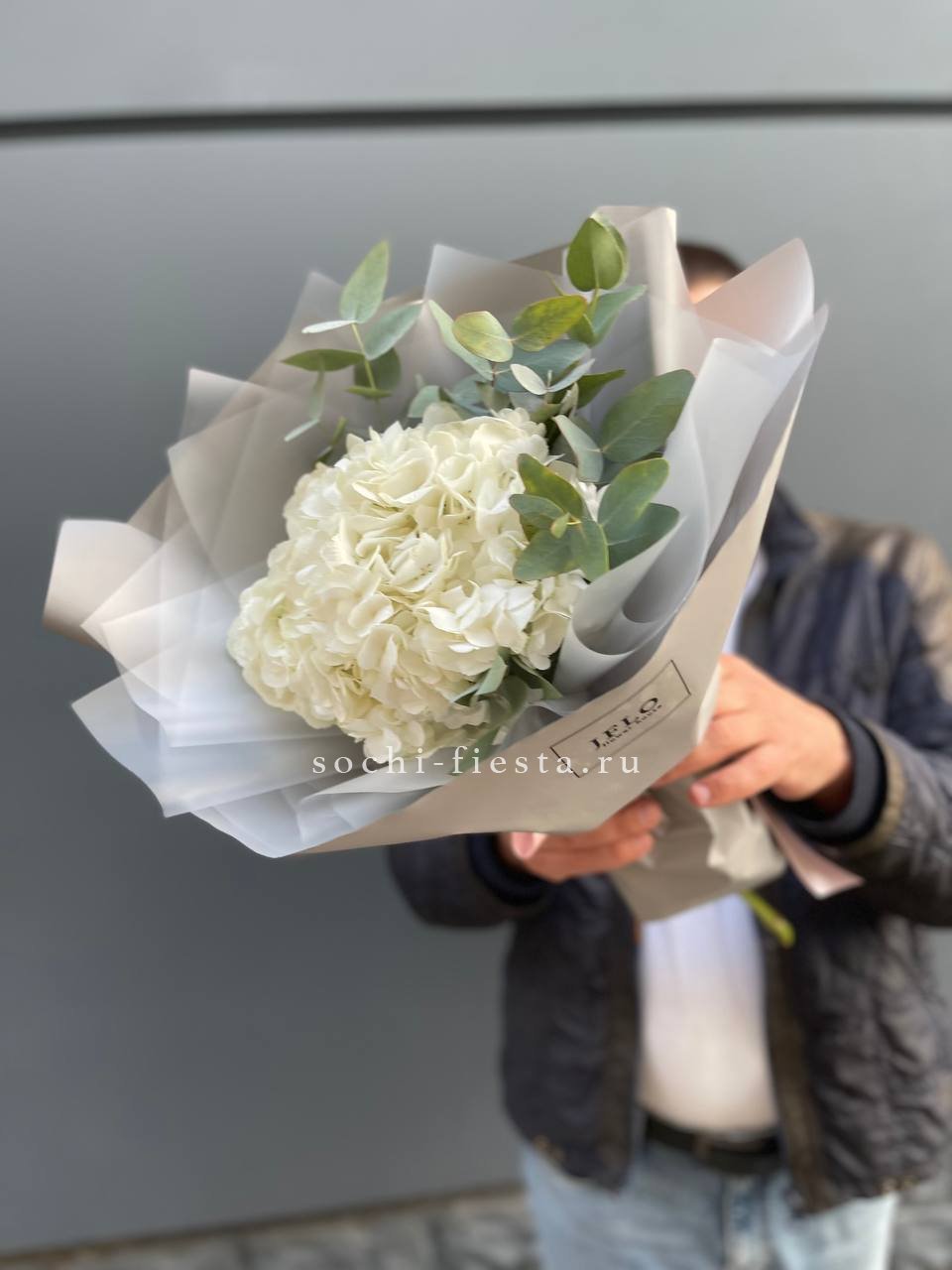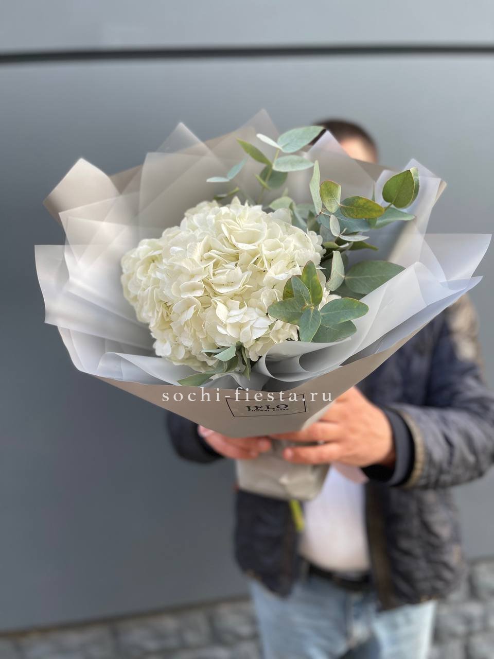 гортензия - 5 шт., лента, дизайнерская упаковка.