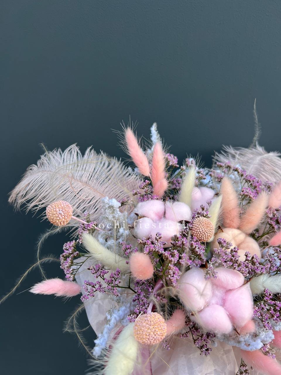 хлопок, лагурус, краспедия, перо, лимониум, аспарагус, цилиндр D13.