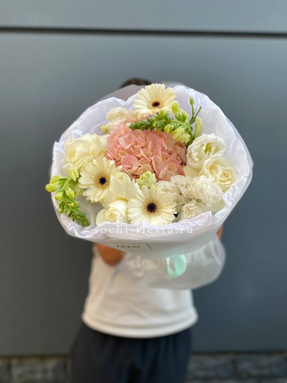 гербера, роза, антиринум(возможна замена), гортензия, эустома, упаковка.