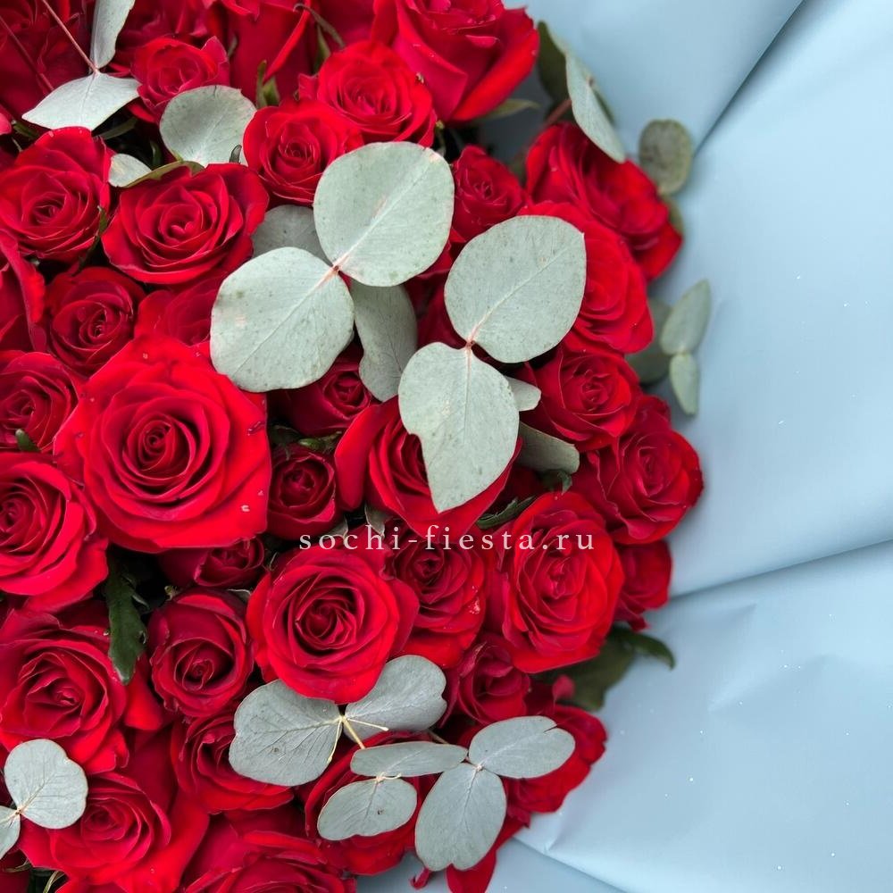 Сочетание пышной голубой гортензии и классических белых роз — это гимн нежности и чистоты. Букет, который не просто удивляет своим масштабом, но и дарит ощущение безмятежности. Идеальный выбор для самого искреннего признания.