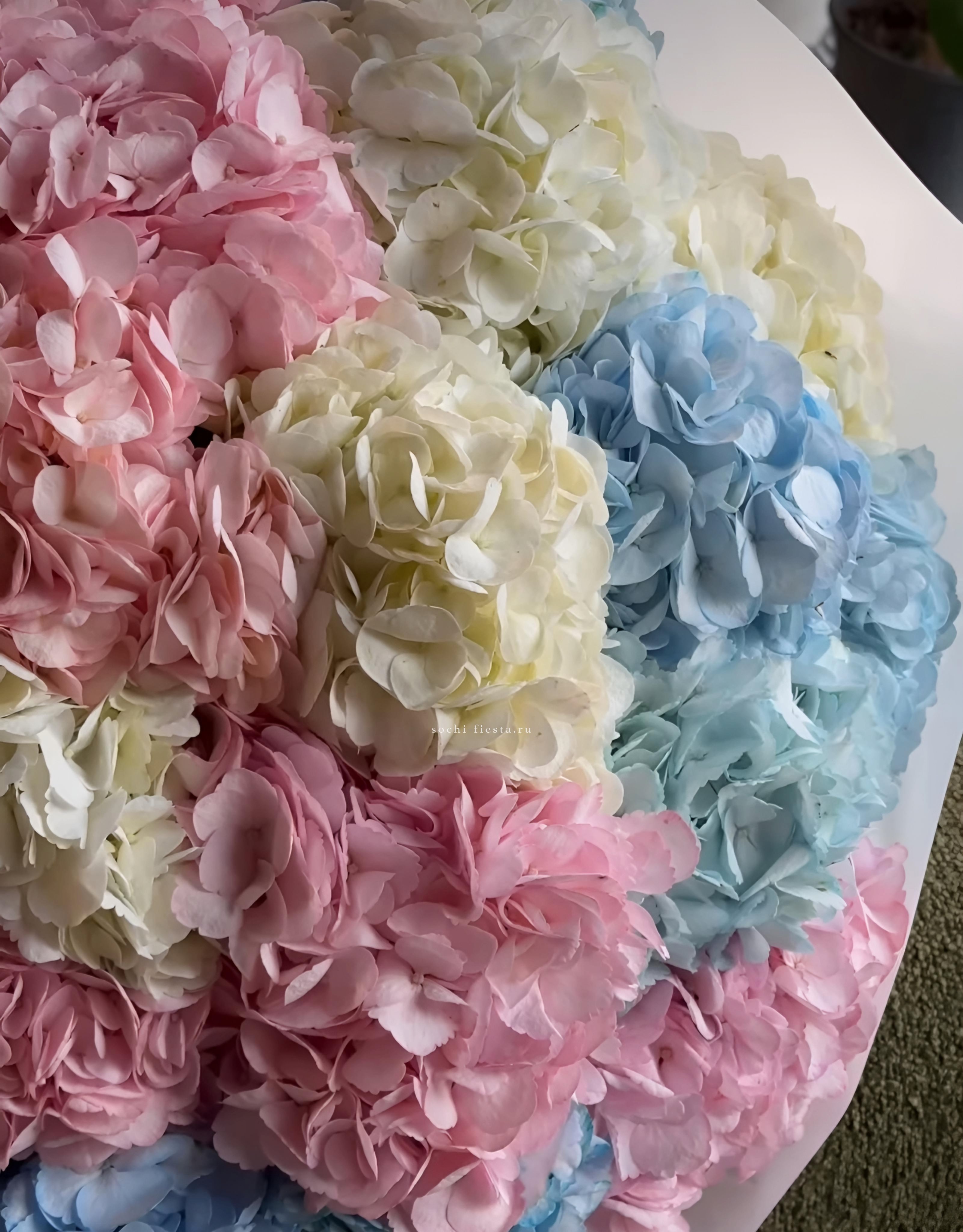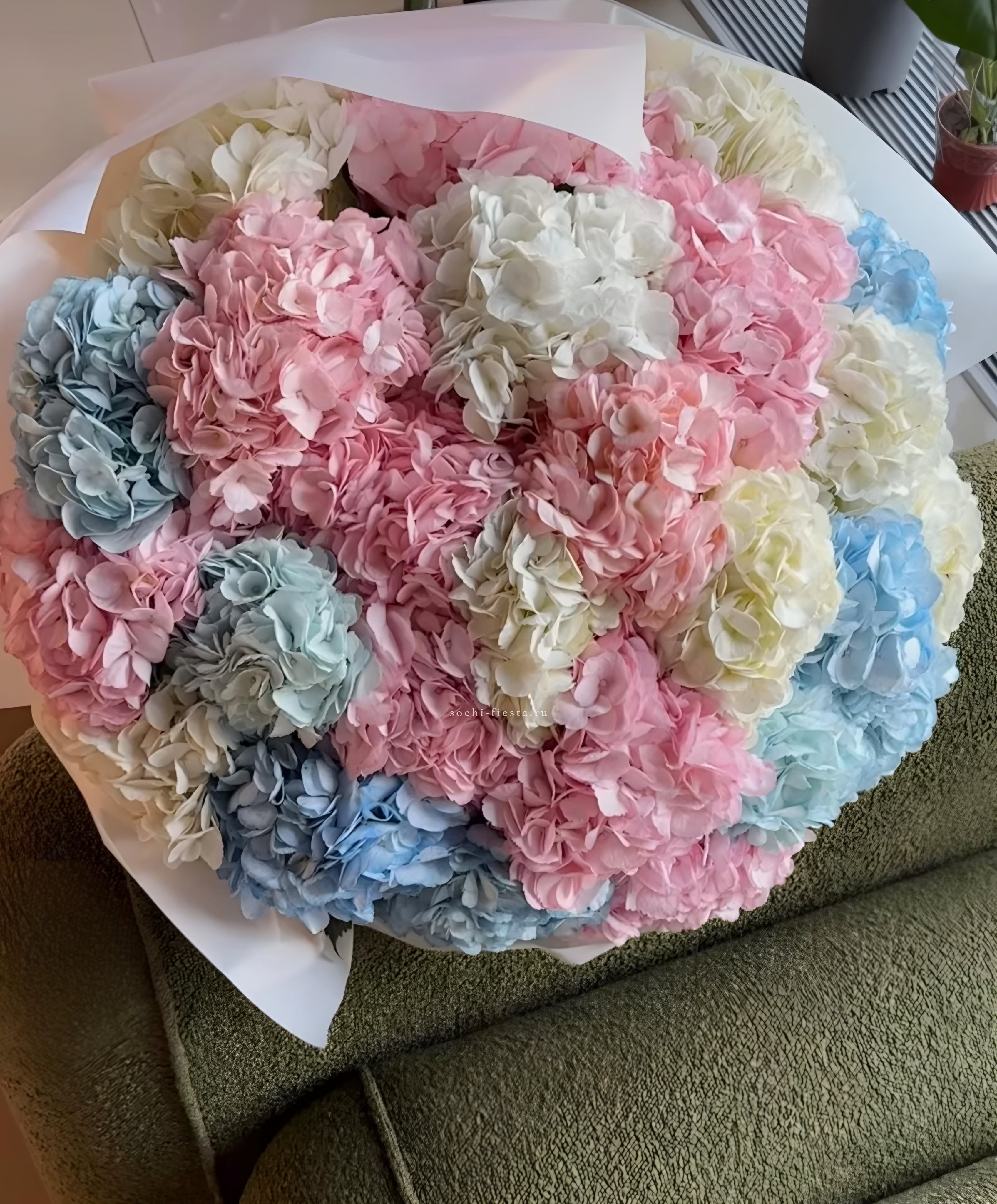 гортензия - 7 шт., лента, дизайнерская упаковка.