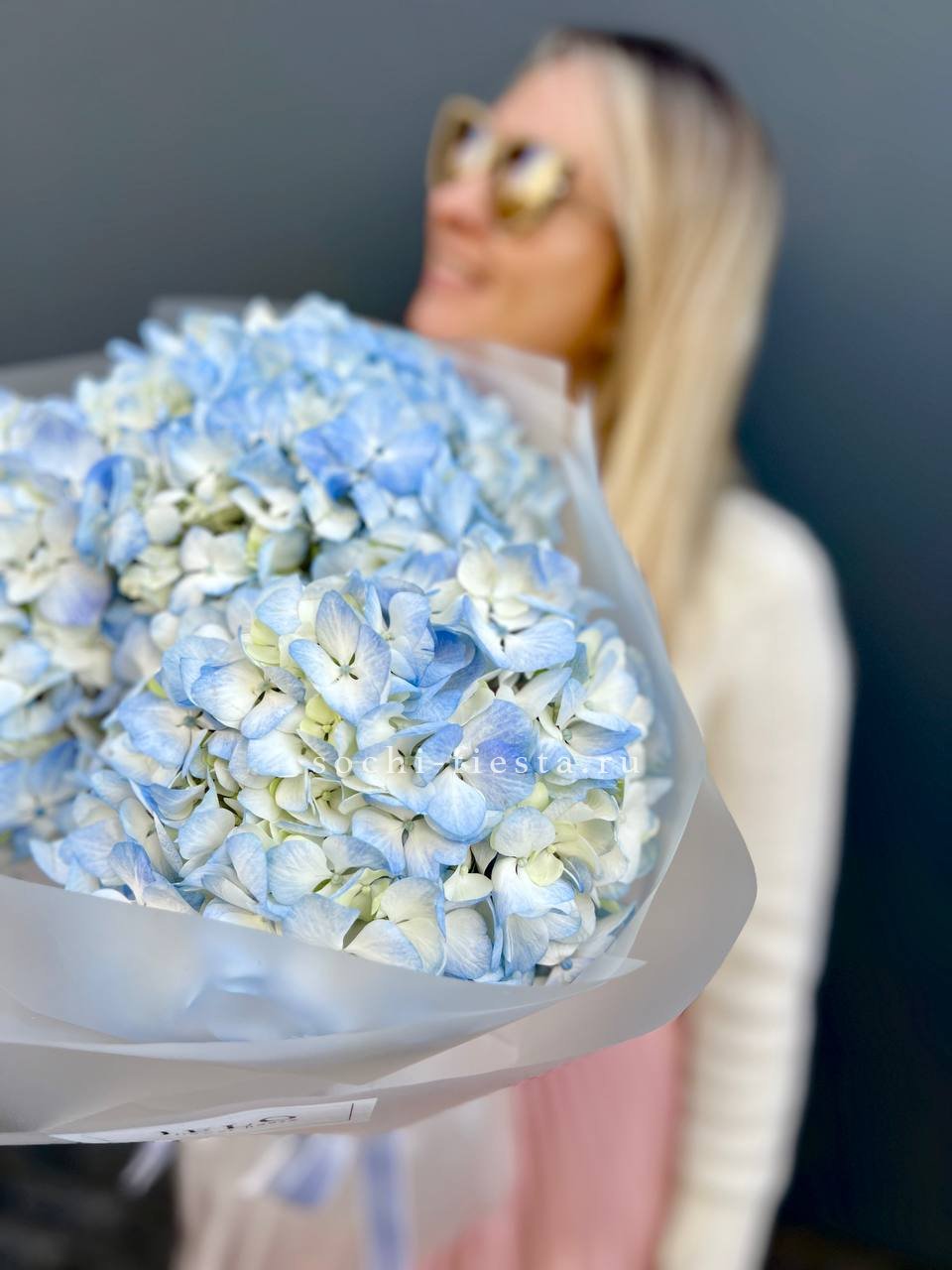 гортензия, лента, дизайнерская упаковка. Цвет гортензии на выбор