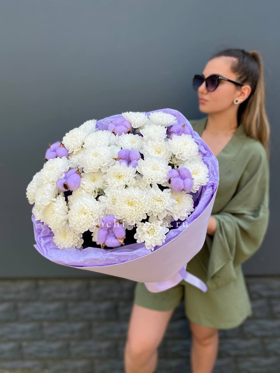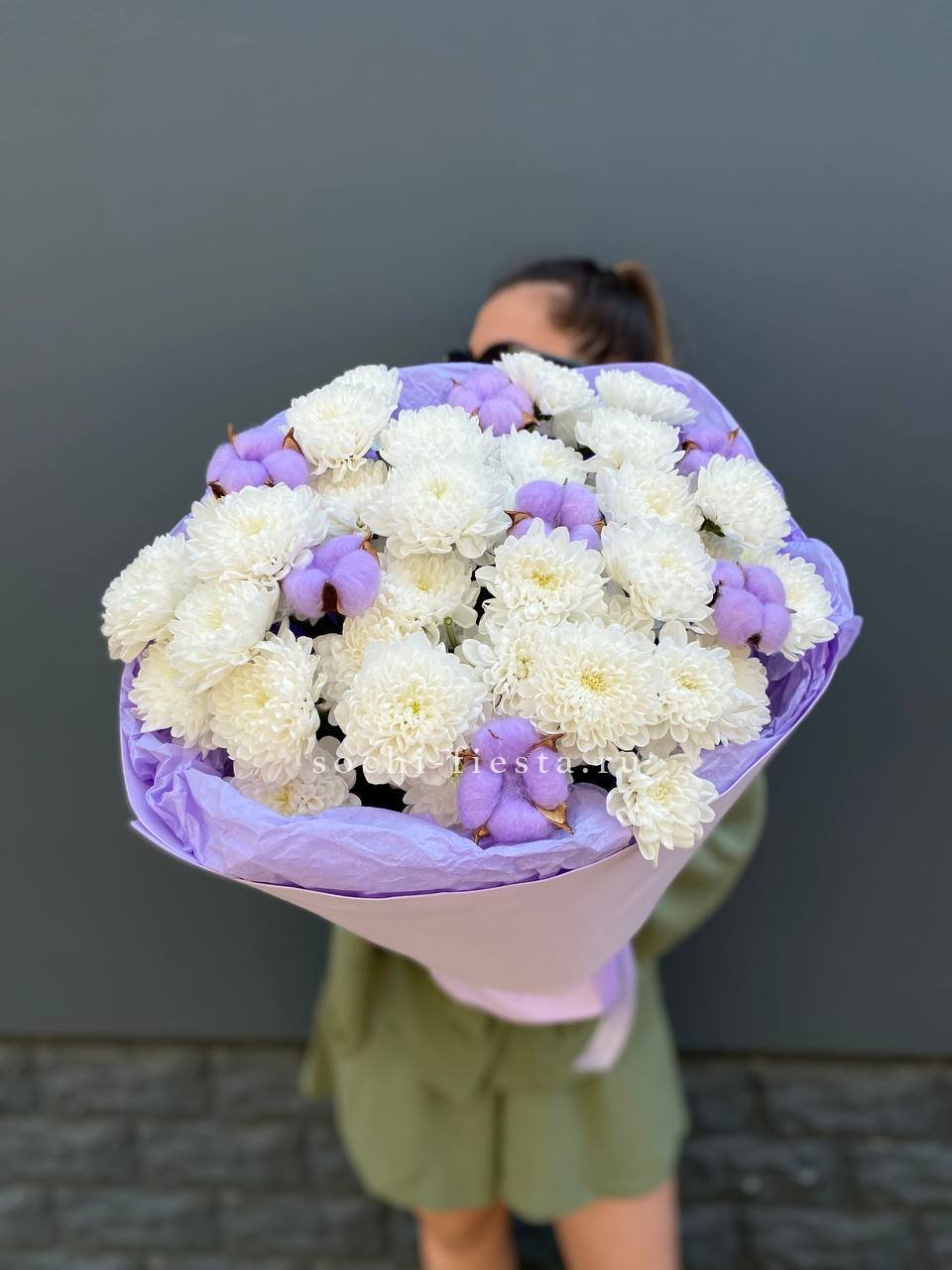 Для заказа товара " Букет хризантем и хлопка" с доставкой в Северодвинске нажмите в корзину