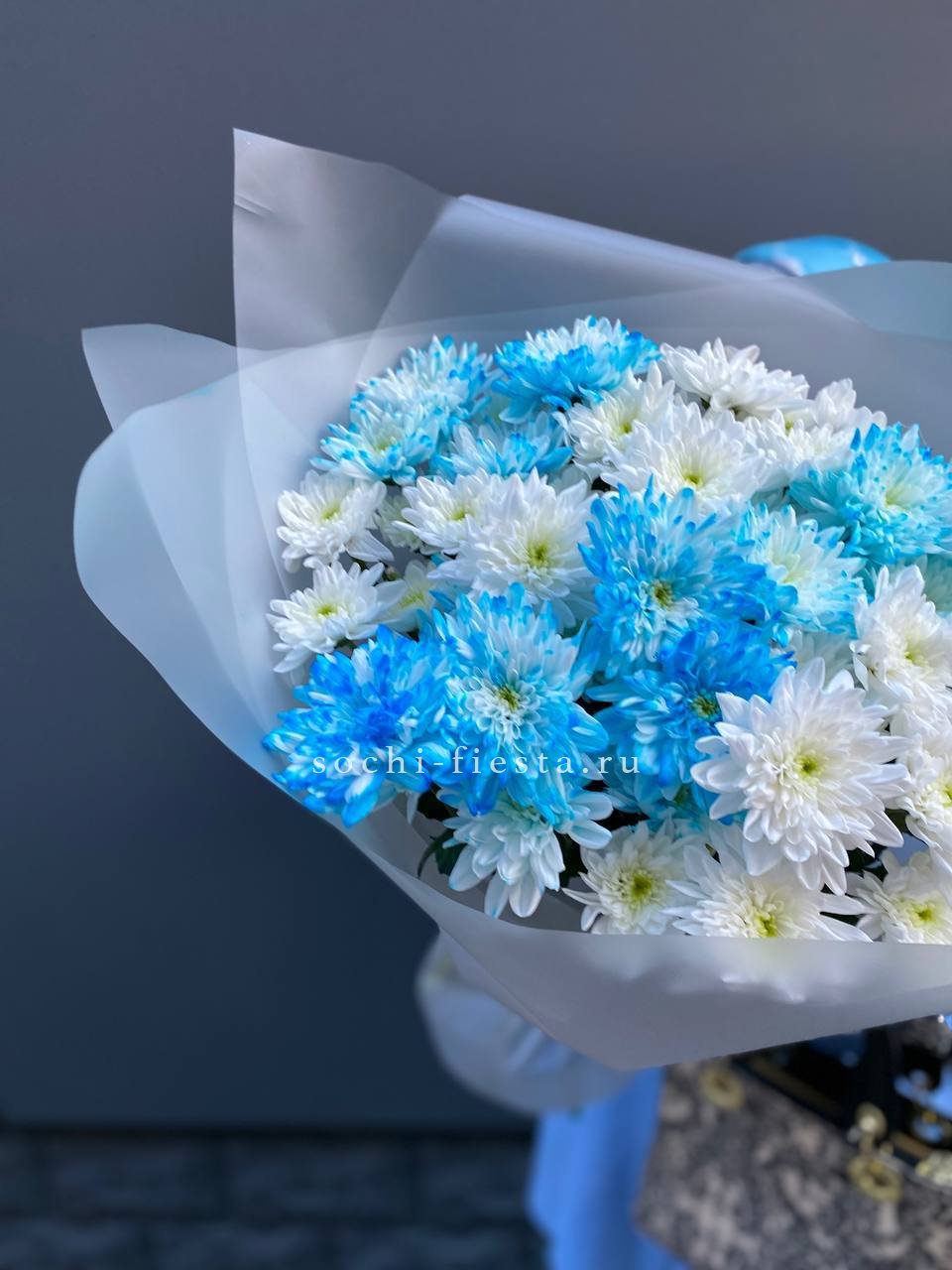 Пушистые коробочки хлопка добавляют воздушности между соцветиями хризантем. Природная фактура встречается с декоративной упаковкой в компактной форме. Букет держит объём и выглядит свежо несколько дней.
