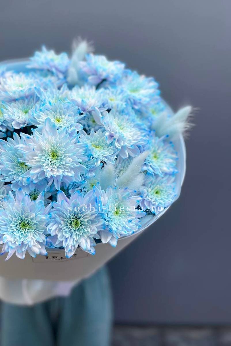 Букет нежно-голубых хризантем