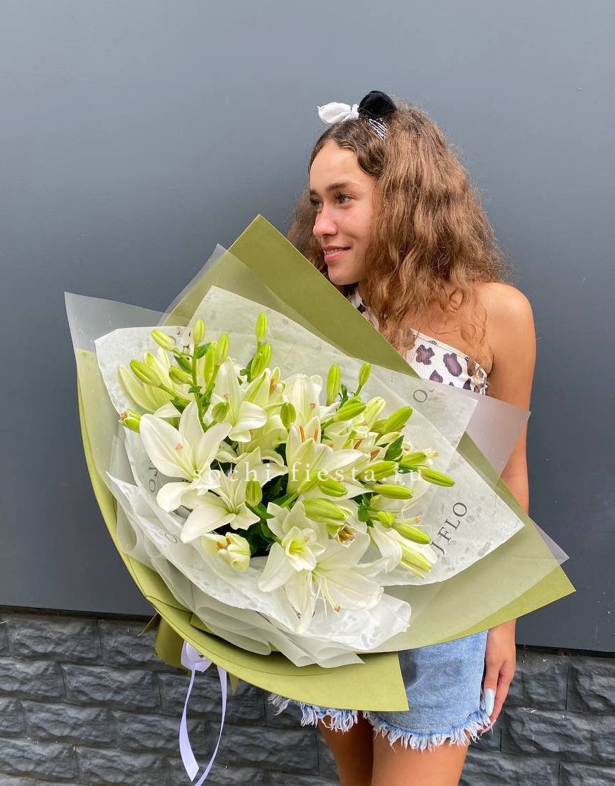 Мы работаем только со свежими цветами — букеты радуют от 7 до 14 дней и дольше при правильном уходе.