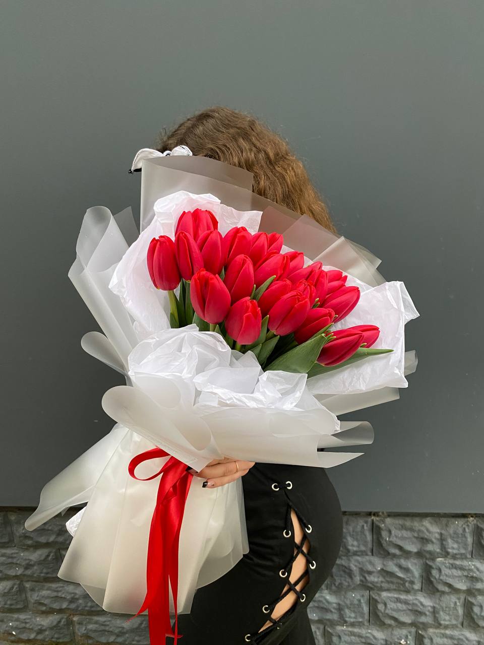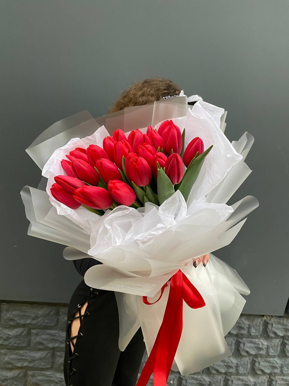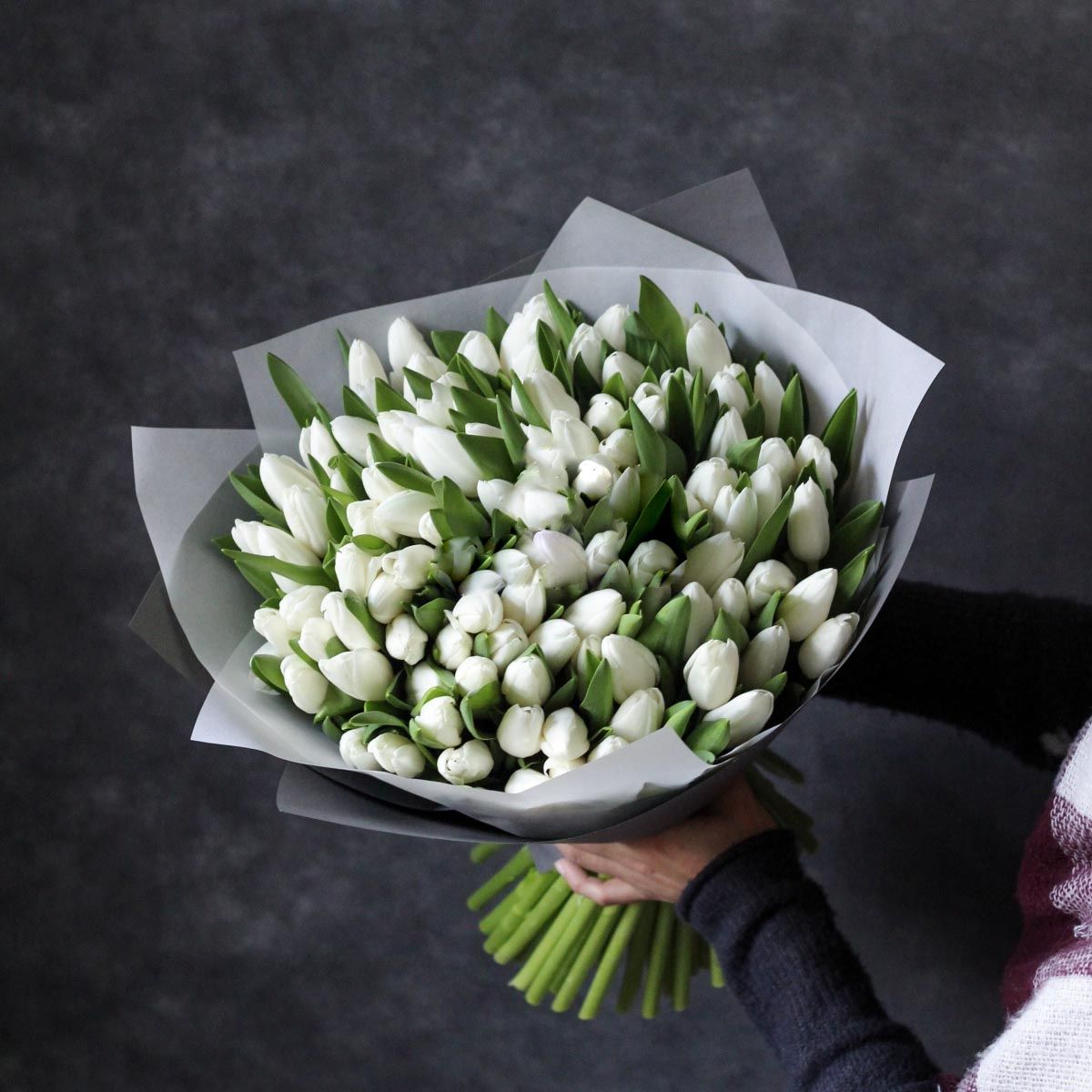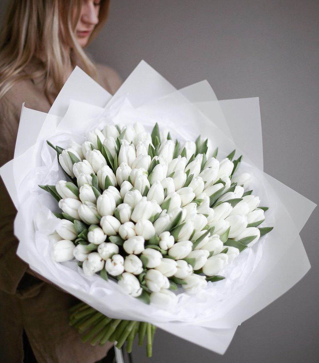 Пятнадцать белоснежных бутонов в лаконичной упаковке держат форму и сохраняют свежесть надолго. Тюльпаны раскрываются постепенно, их лепестки плотные и аккуратные. Композиция удобна для размещения в любой вазе.