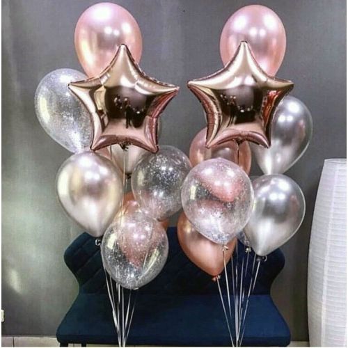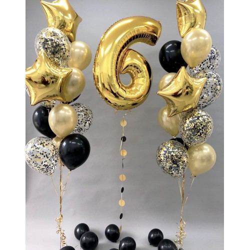 чёрные шары -7 шт., фольгированные красные сердца - 5 шт., грузик. Все шары мы предварительно обрабатываем специальным составом Highfloat, обеспечивая им длительный срок полета.