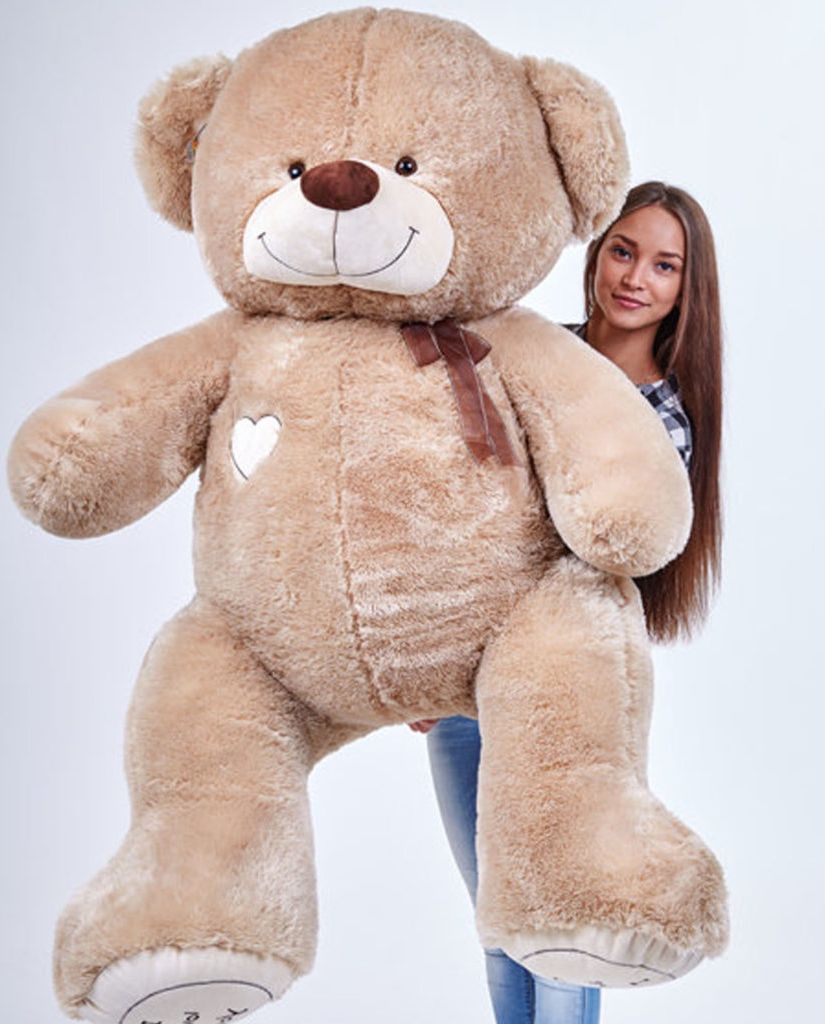 Бурый великан ростом в полтора человека способен заполнить собой угол комнаты или диван целиком. Мягкий плюш и крупные пропорции создают ощущение уютной массивности.