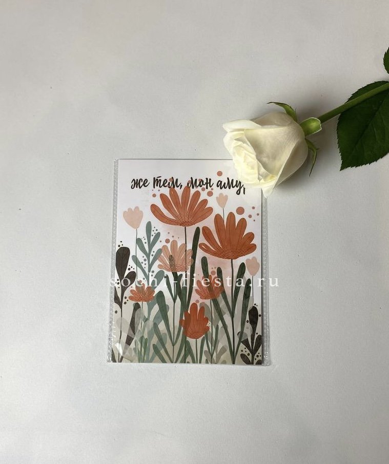 размеры открытки 10х15см. Прикладывается к букету или композиции.