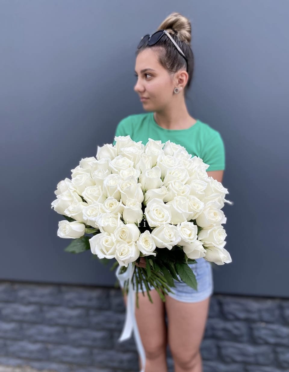 Белоснежные головки роз раскрываются постепенно и держат форму несколько дней. Монохромная гамма вписывается в минималистичный интерьер и современную эстетику.