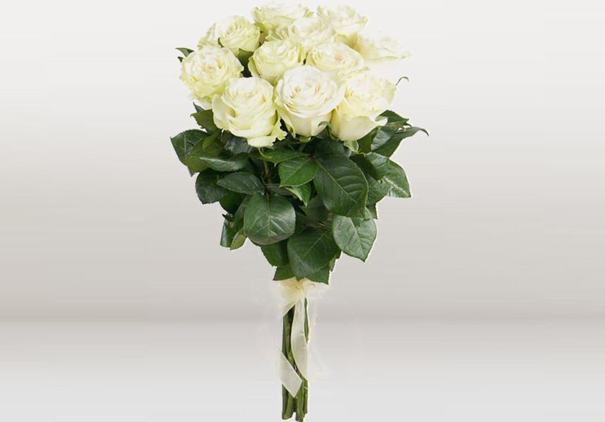Охапка из ста одной розы – это про масштаб и драматичность момента. Белоснежные бутоны плотно собраны вместе, создавая монументальную форму. Композиция говорит сама за себя без лишних деталей.
