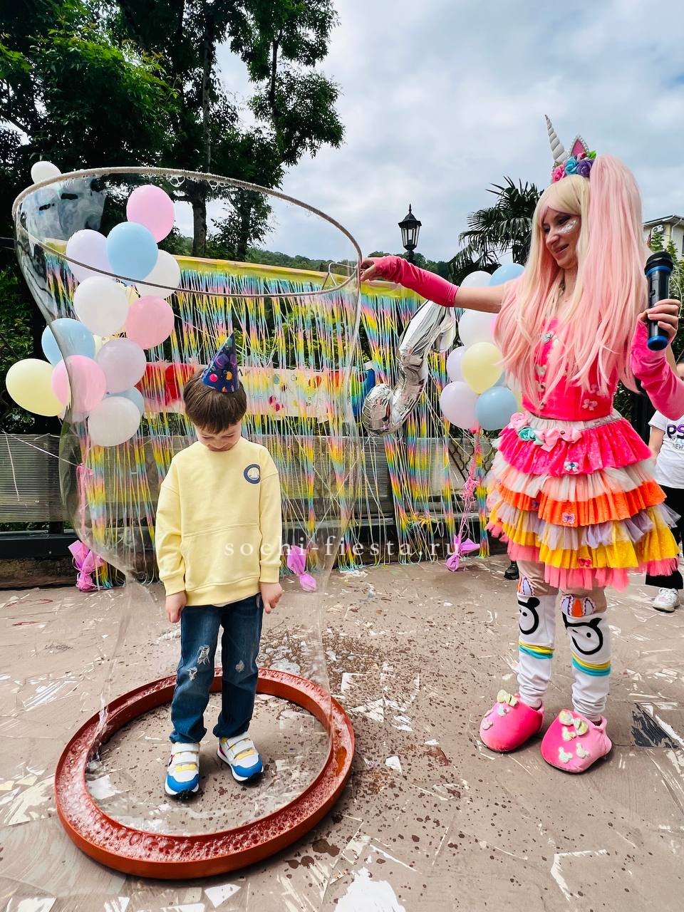 Шоу мыльных пузырей — яркое и захватывающее представление, в котором мастер создает огромные, разноцветные и необычные мыльные пузыри разного размера. В программе используются специальные техники и инструменты для формирования фантастических фигур, пузырей-гигантов и эффектных трюков. Это зрелищное шоу радует зрителей своей красотой, магией и атмосферой веселья, особенно популярное среди детей и семей.