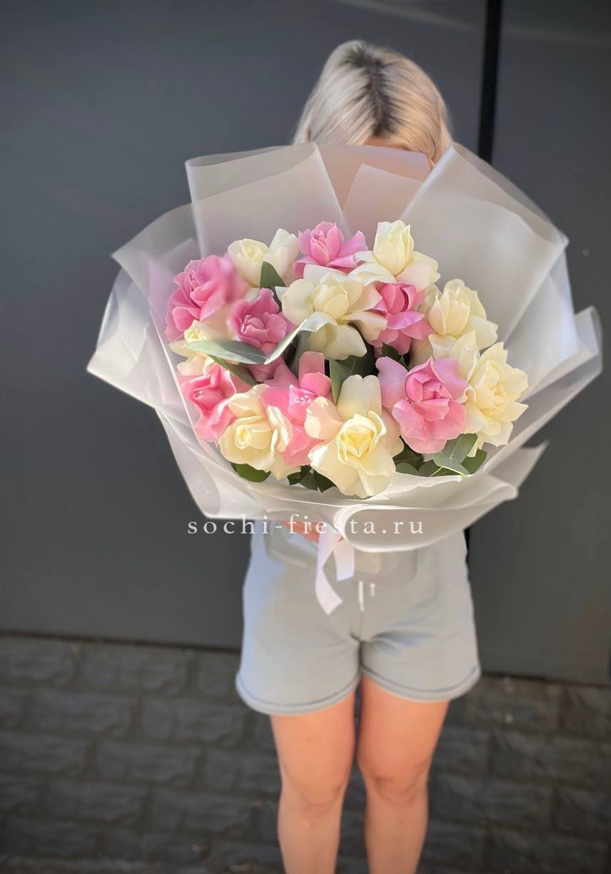 15 бело-розовых роз