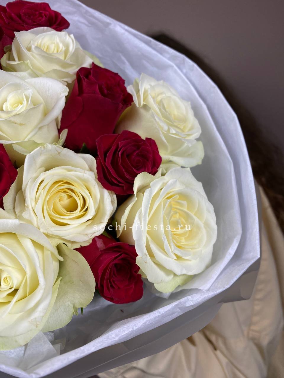 Для заказа товара "Букет из красных белых 15 роз" с доставкой в Северодвинске нажмите в корзину