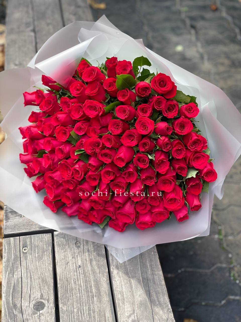 33 красных роз, лента, дизайнерская упаковка Вы можете выбрать желаемое количество цветов данном в букете.
