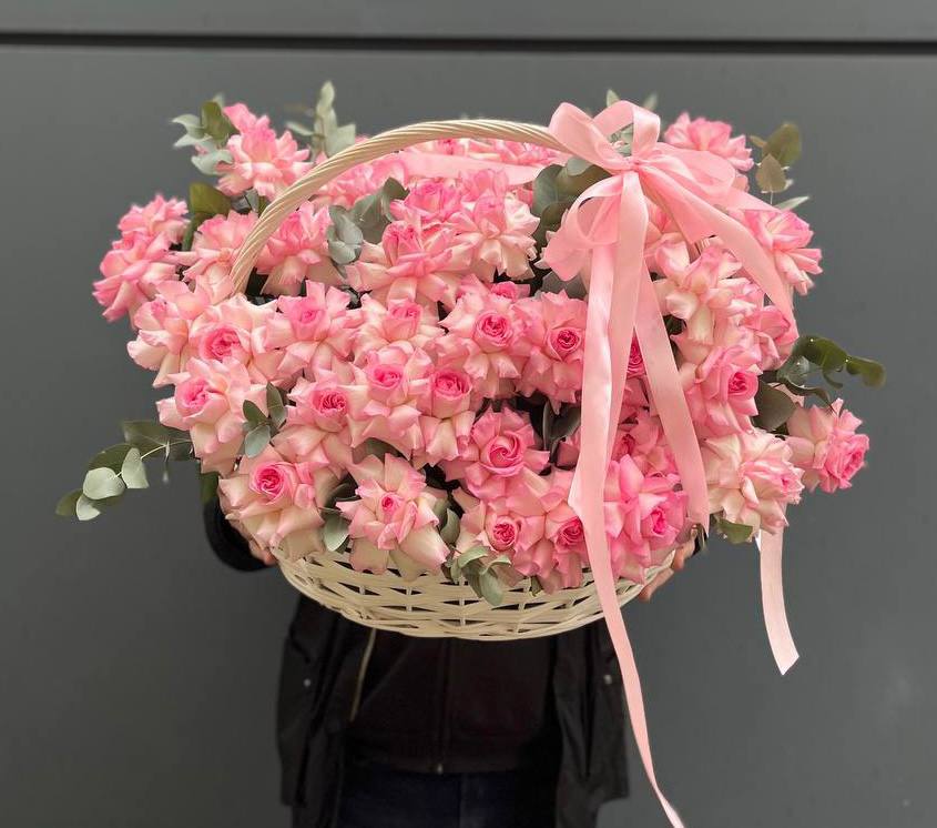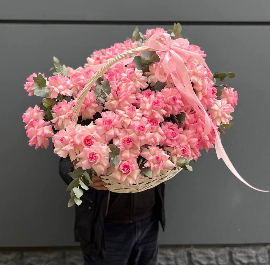 Тридцать пять стеблей формируют объемную композицию в розовой гамме. Букет занимает пространство уверенно и держит форму за счет плотной сборки. Классика, которая работает всегда.