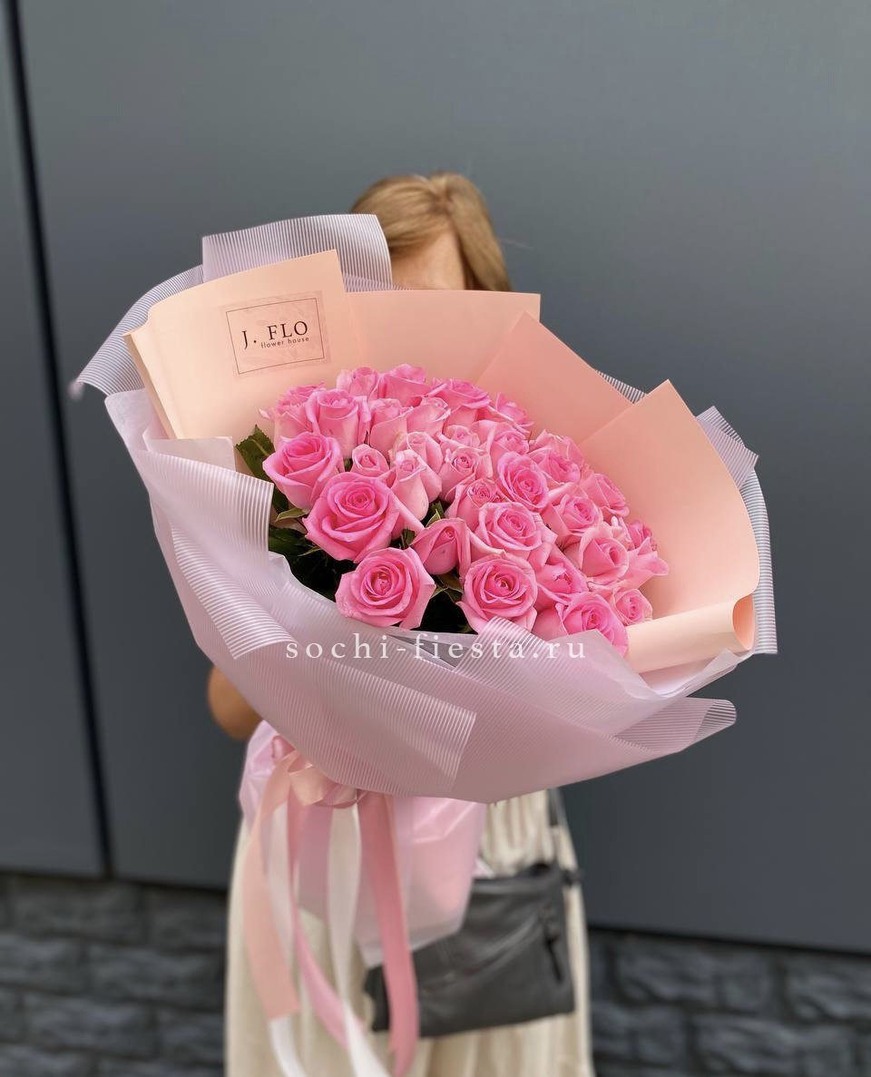 розовые розы - количество на выбор, авторская упаковка, лента.