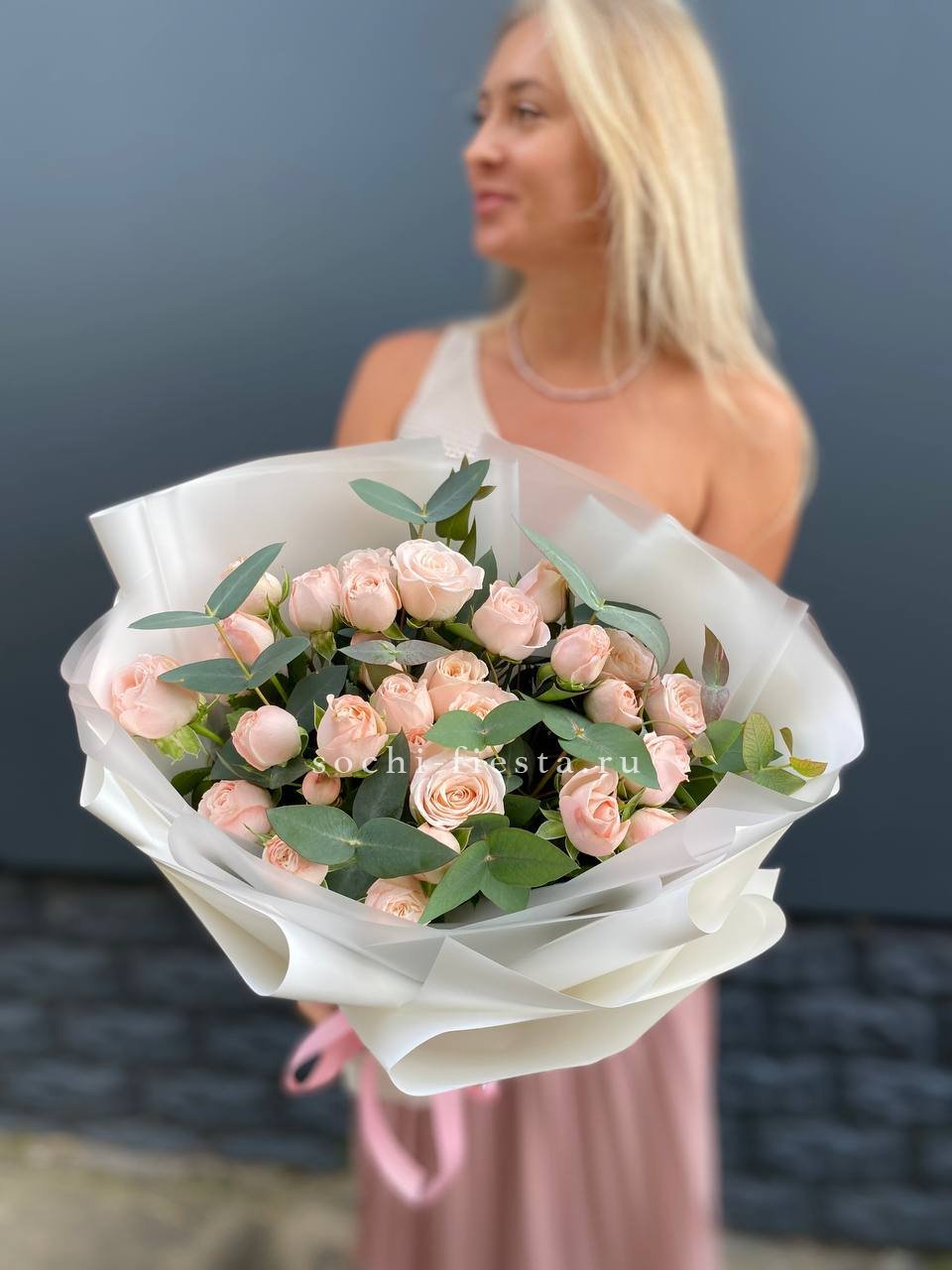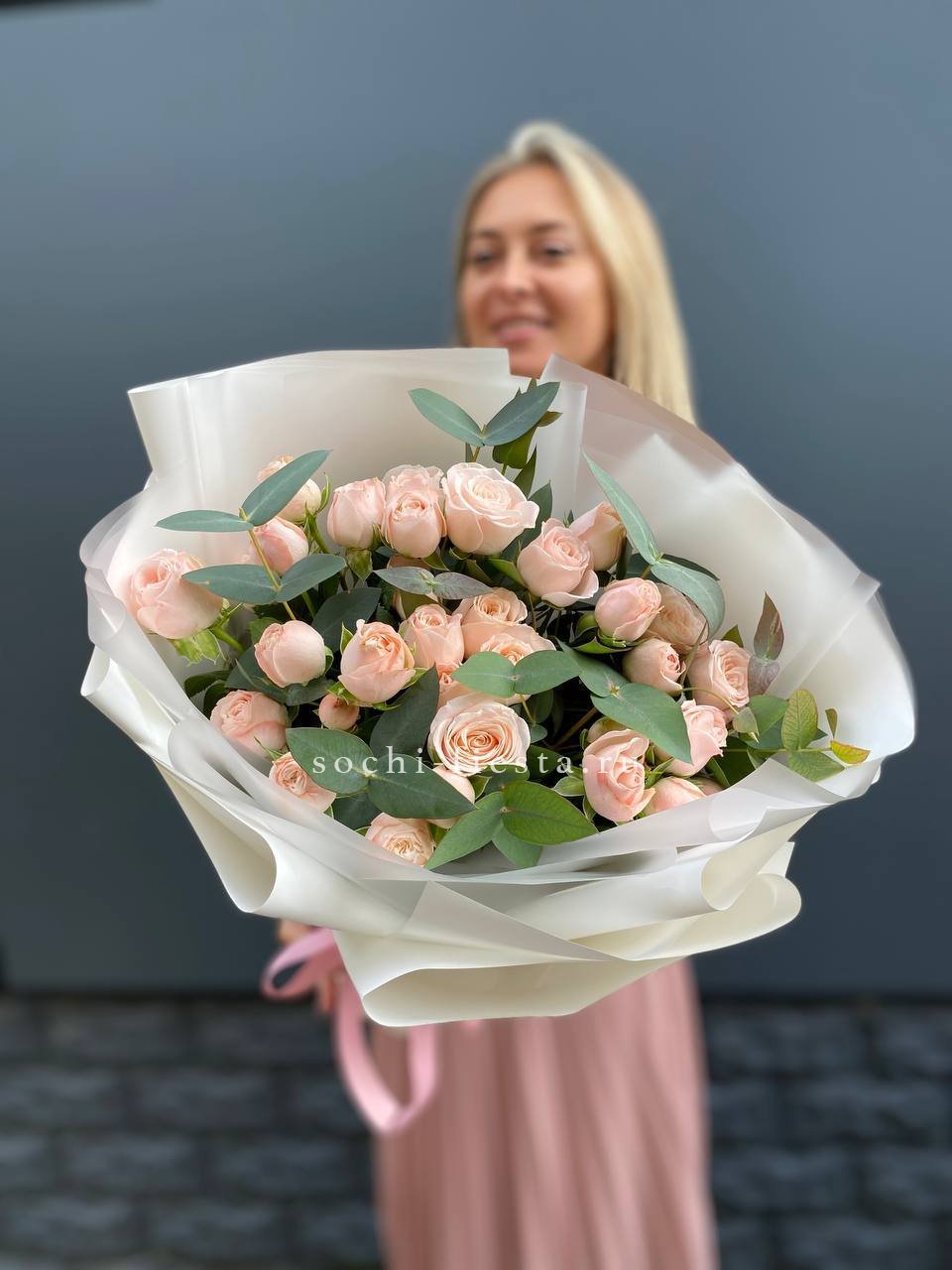 101 кустовая роза, лента, дизайнерская упаковка.