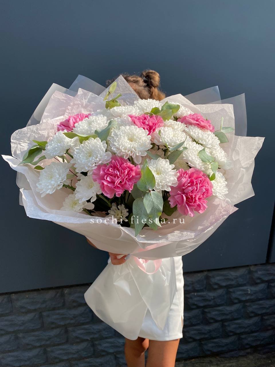 Для заказа товара " Букет хризантем и диантусов "Воздушный"" с доставкой в Северодвинске нажмите в корзину