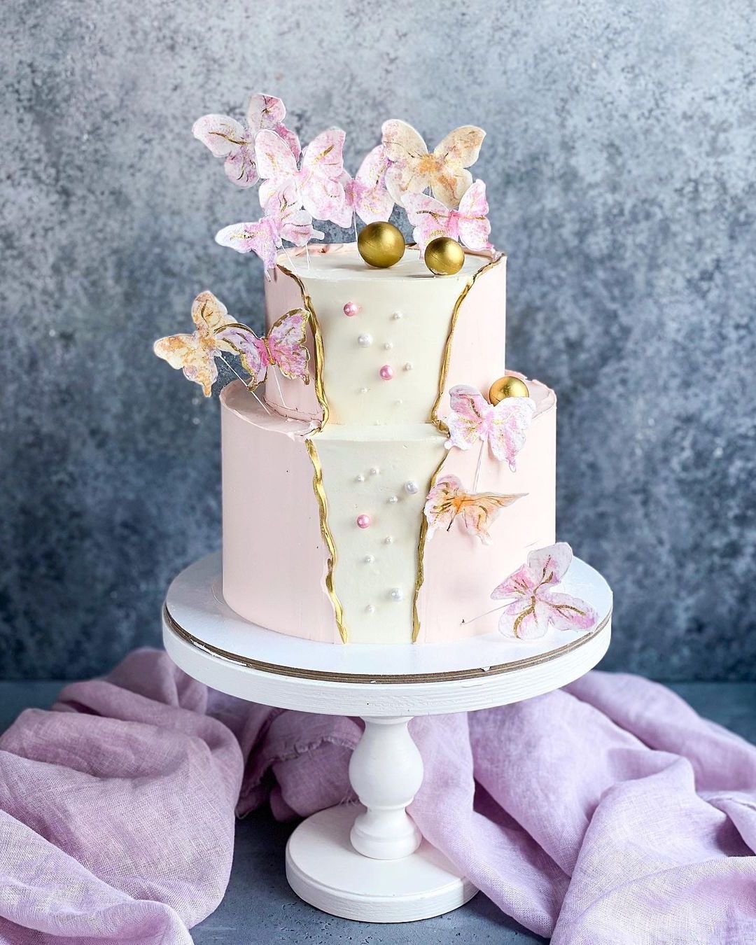 Авторская работа с плавными переходами крема и графичными линиями глазури. Декор выстроен по спирали, создавая динамику и объем. Каждый слой подчинен единому ритму.